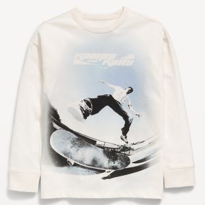 Oversized Short-Sleeve Logo-Graphic Raw-Edge T-Shirt for Girls