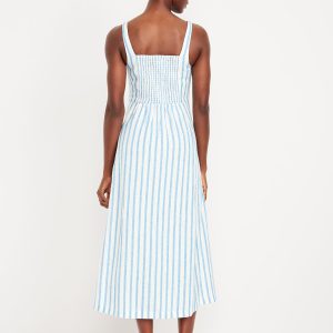 Fit & Flare Sleeveless Linen-Blend Midi Dress