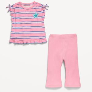 Printed Ruffle-Trim Top and Ribbed Flare Leggings Set for Baby