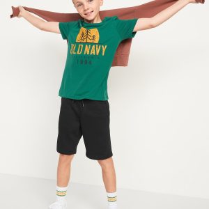 2-Pack Fleece Jogger Shorts for Boys (At Knee): Online exclusive!, Pack includes 2 fleece jogger shorts, each in a different color or print., Elasticized hem, with built-in drawcord., Diagonal on-seam, jersey-lined pockets., Faux fly., Soft, garment-washed fleece, with mechanical stretch for ease of movement., Easy pull-on style., #701743