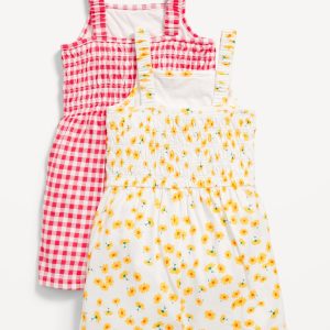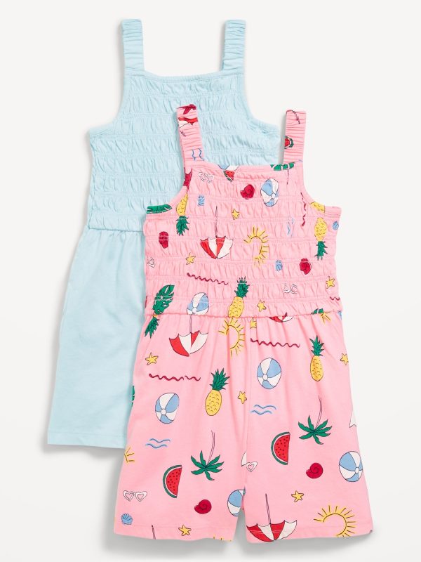 2-Pack Waist-Defined Sleeveless Smocked Romper for Girls