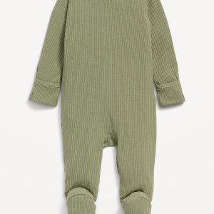 2-Way-Zip Sleep & Play Footed One-Piece for Baby: rib-knit crew neck, long sleeves, fold-over mittens, reversible two-way zippersewn-in feet, #867712
