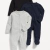 2-Way-Zip Sleep & Play Ruffle-Shoulder Footed One-Piece for Baby: rib-knit crew neck, long sleeves, fold-over mittens, reversible two-way zippersewn-in feet, #867712