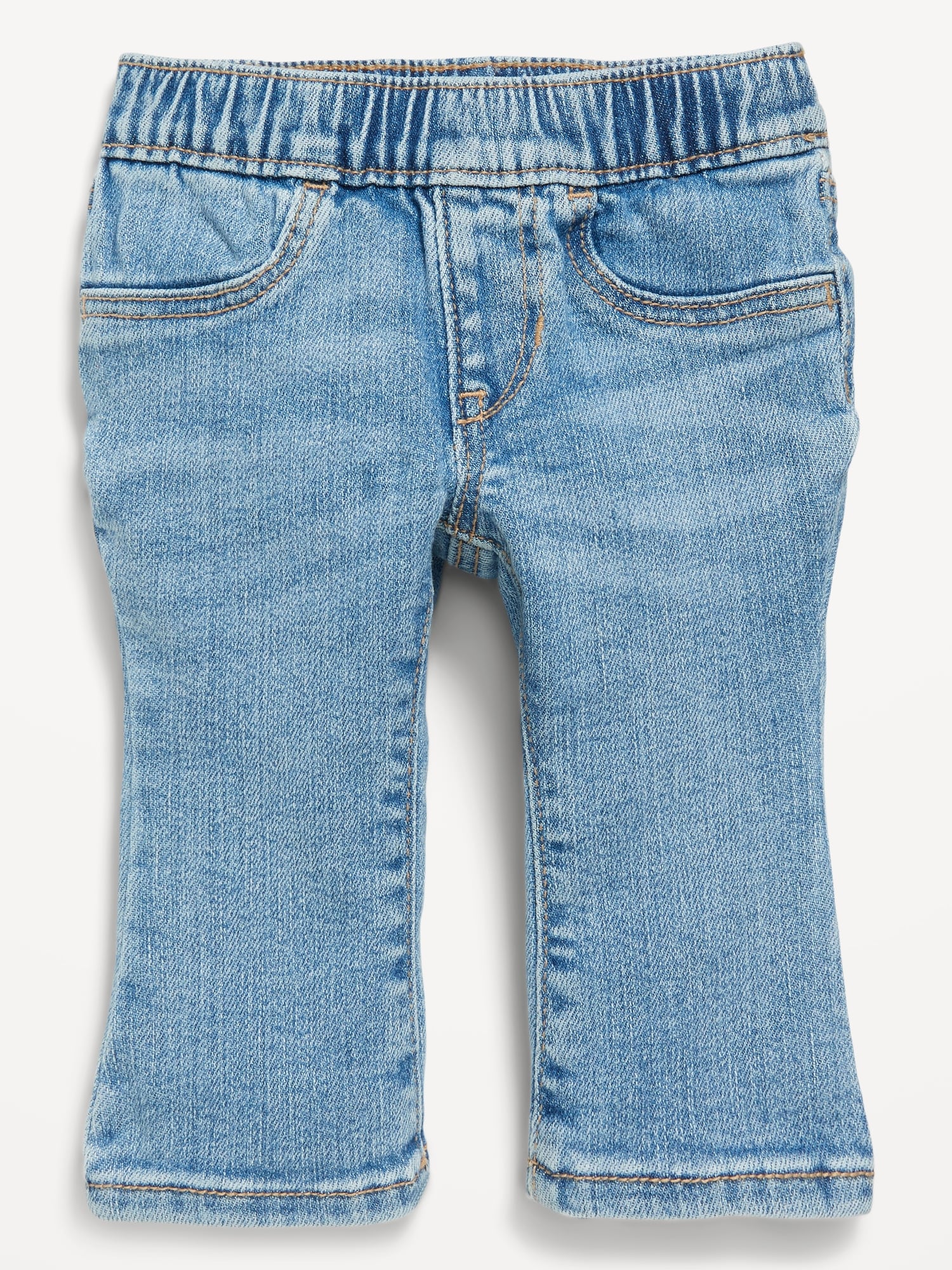 360° Stretch Pull-On Flare Jeans for Baby: elasticized pull-on waist, faux fly, decorative scoop pockets in front, patch pockets in back, flare leg, #580849