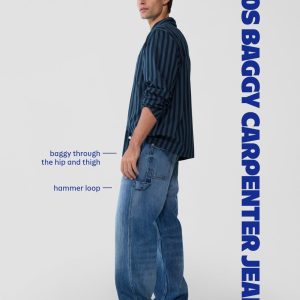 90's Baggy Carpenter Jeans: zip fly, front scoop pockets, back patch pockets, left hammer loop, whiskering and fading, #788029