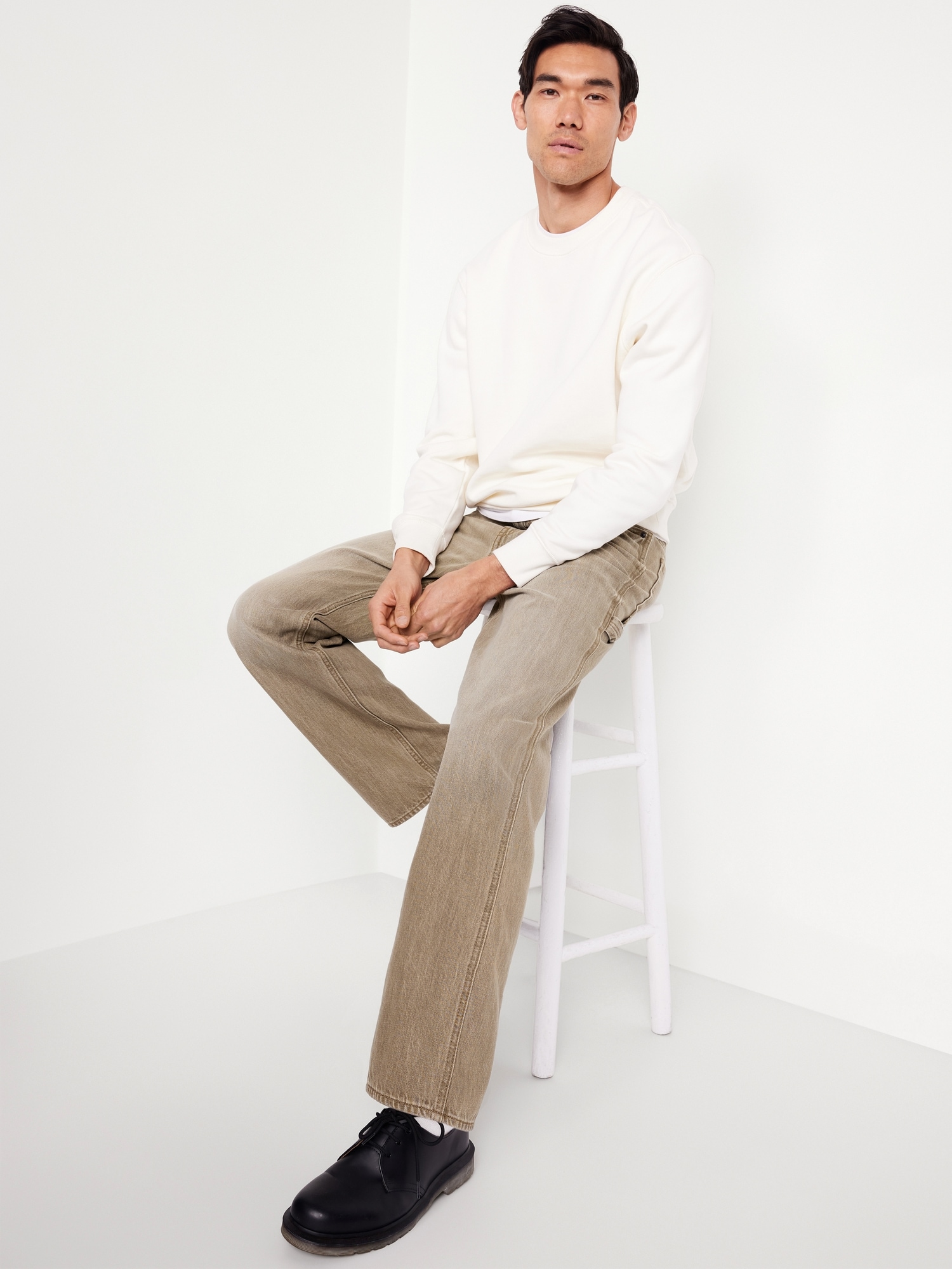 90's Baggy Carpenter Jeans: zip fly, front scoop pockets, back patch pockets, left hammer loop, whiskering and fading, #788029