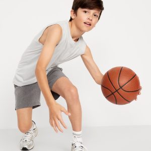 Above Knee StretchTech Shorts for Boys: elasticized waistband, interior drawstring, diagonal on-seam pockets, vented sides at hem, #695643