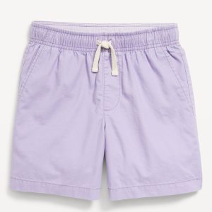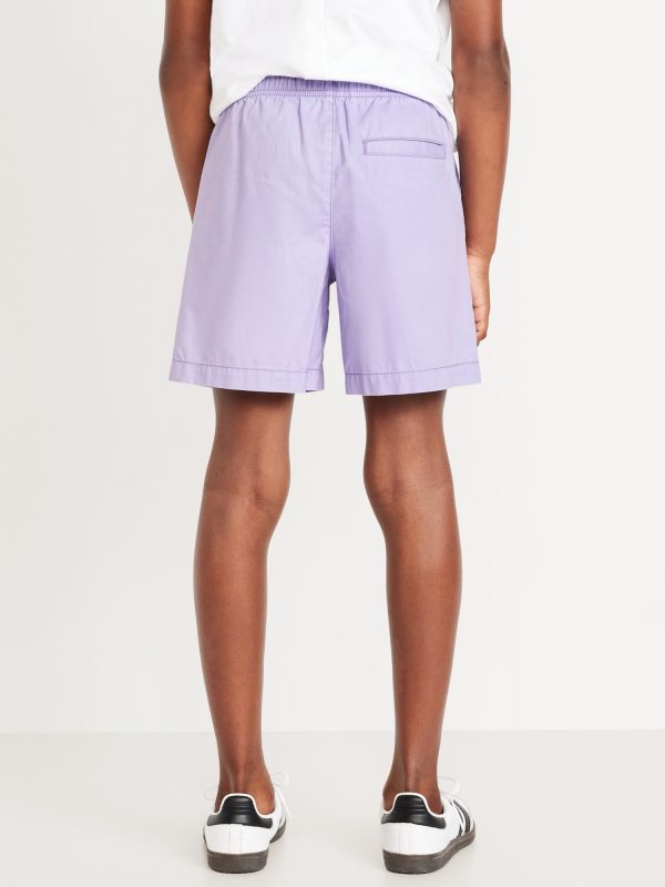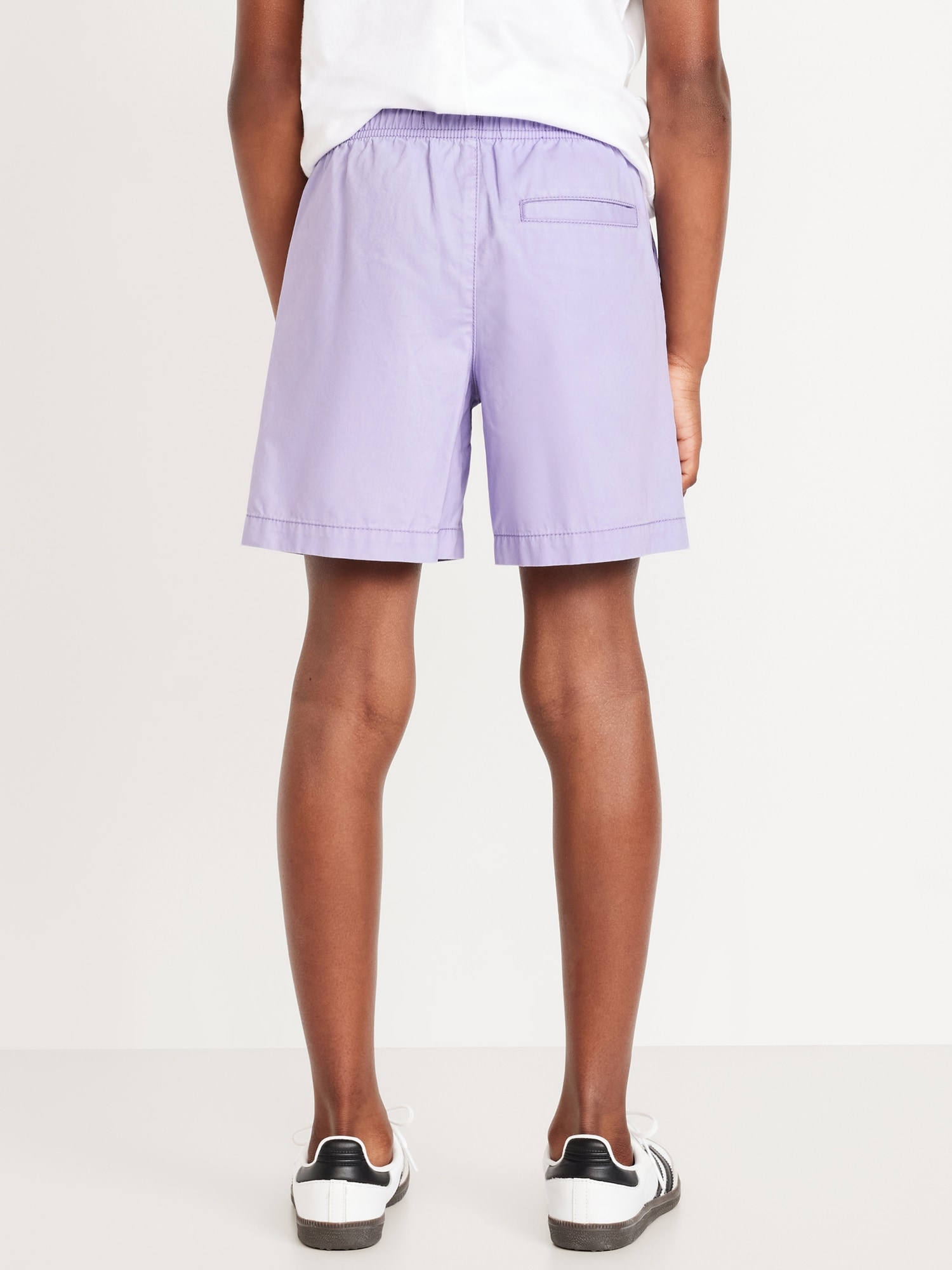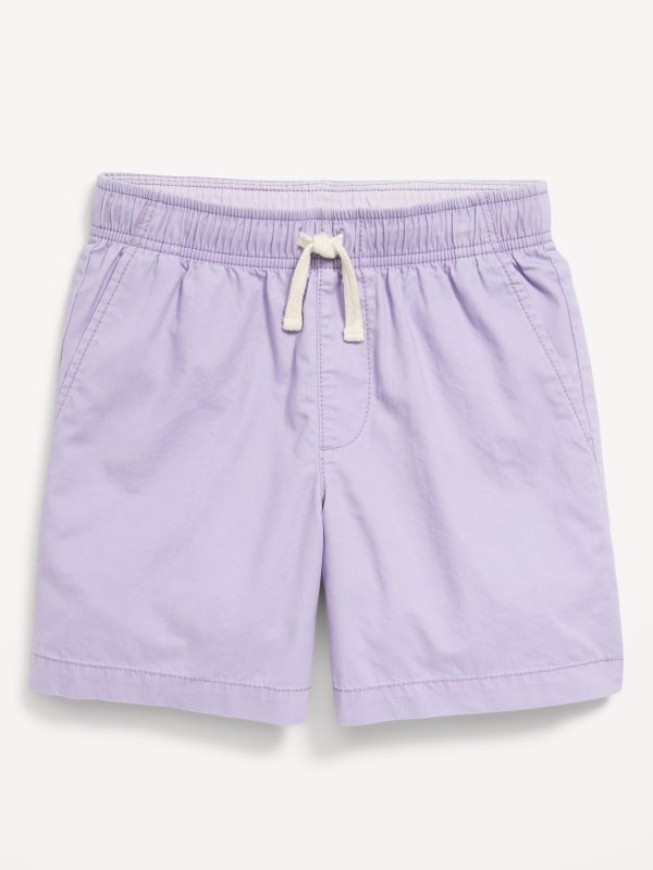 Above Knee Twill Pull-On Shorts for Boys: elasticized waistband, functional drawstring, faux fly, diagonal on-seam pockets, single welt pocket at back, easy pull-on style, #860738