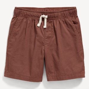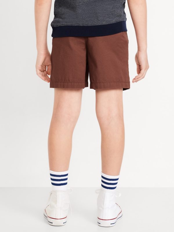 Above Knee Twill Pull-On Shorts for Boys: elasticized waistband, functional drawstring, faux fly, diagonal on-seam pockets, single welt pocket at back, easy pull-on style, #860738