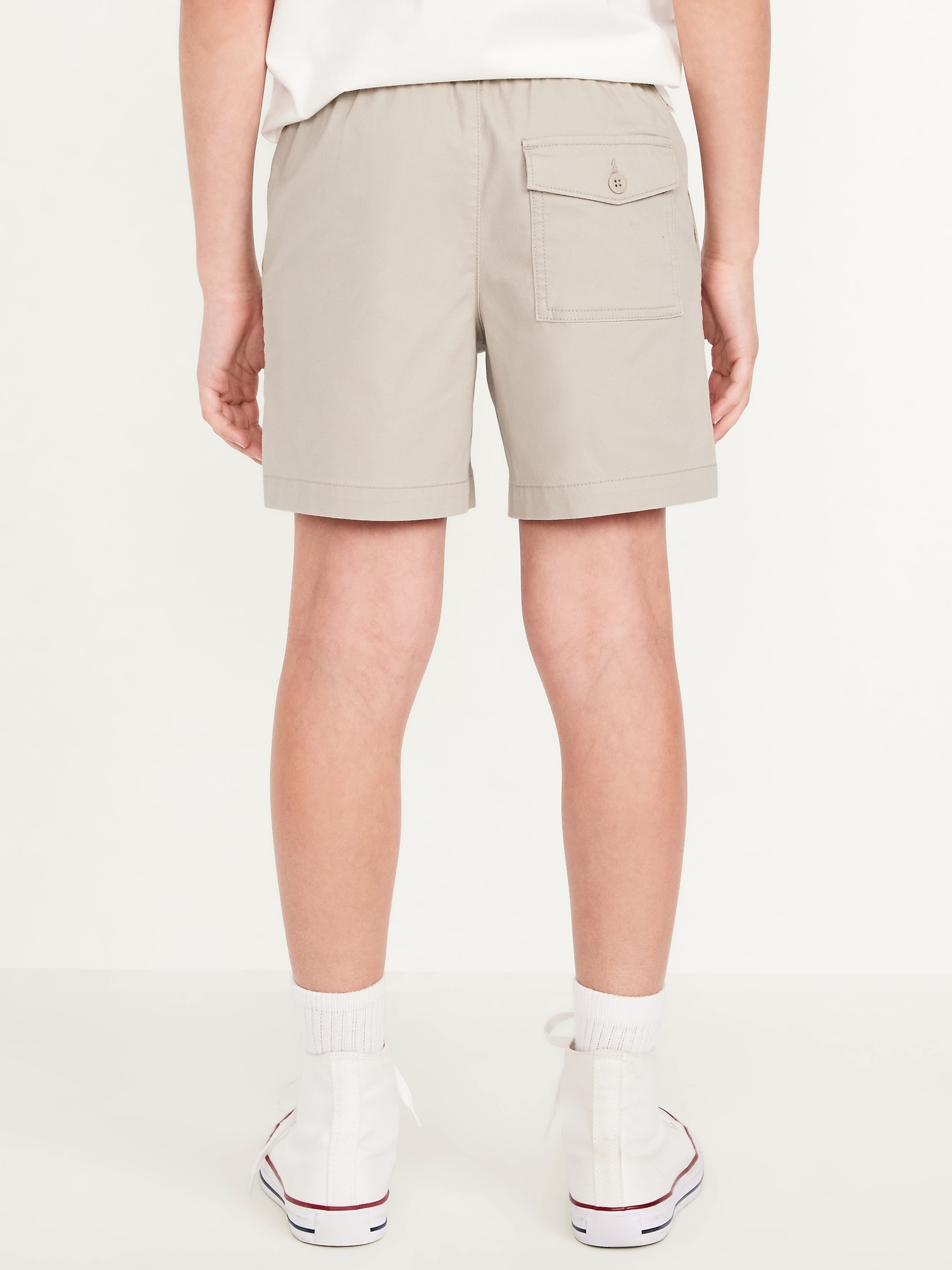 Above Knee Workwear Pull-On Shorts for Boys: elastic-drawstring waist, diagonal front pockets, button-flap back right pocket, pull-on style, #766372