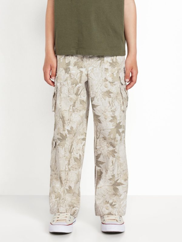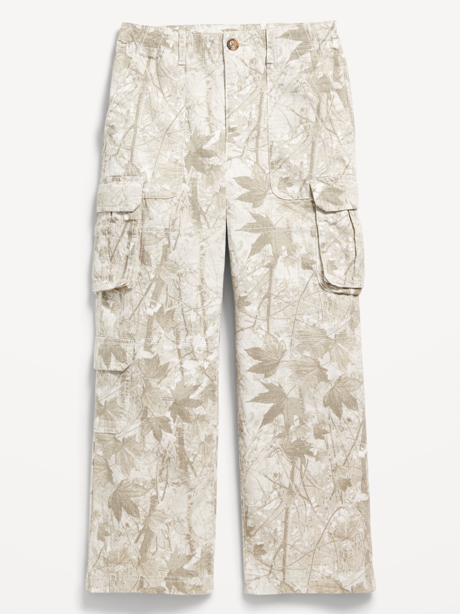 Baggy Cargo Ripstop Pants for Boys: interior adjustable waistband, regular button closure, zip fly, slanted side pockets, adhesive secure flap cargo pockets, patch pockets at back, #766354