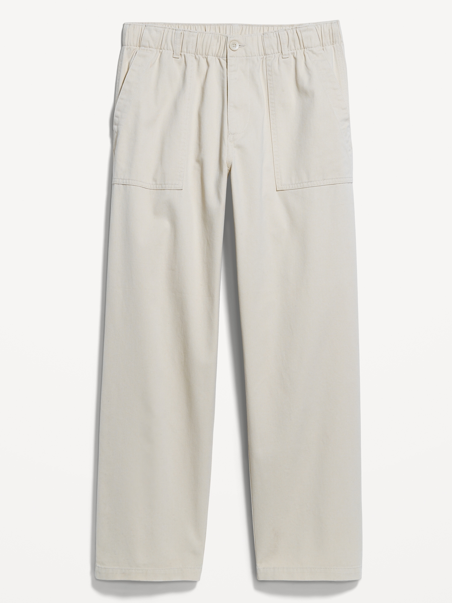 Baggy Soft Workwear Pants: Relaxed from hip to ankle with a laid-back attitude.elasticized drawstring waistband, button-front waist, zip fly, front utility pockets, back button-flap pockets, #751382