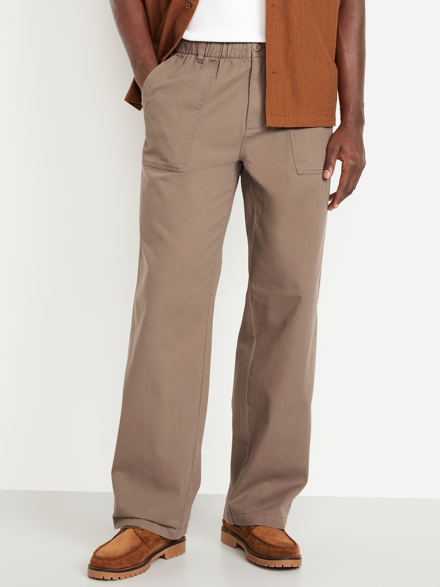 Baggy Soft Workwear Pants: Relaxed from hip to ankle with a laid-back attitude.elasticized drawstring waistband, button-front waist, zip fly, front utility pockets, back button-flap pockets, #751382