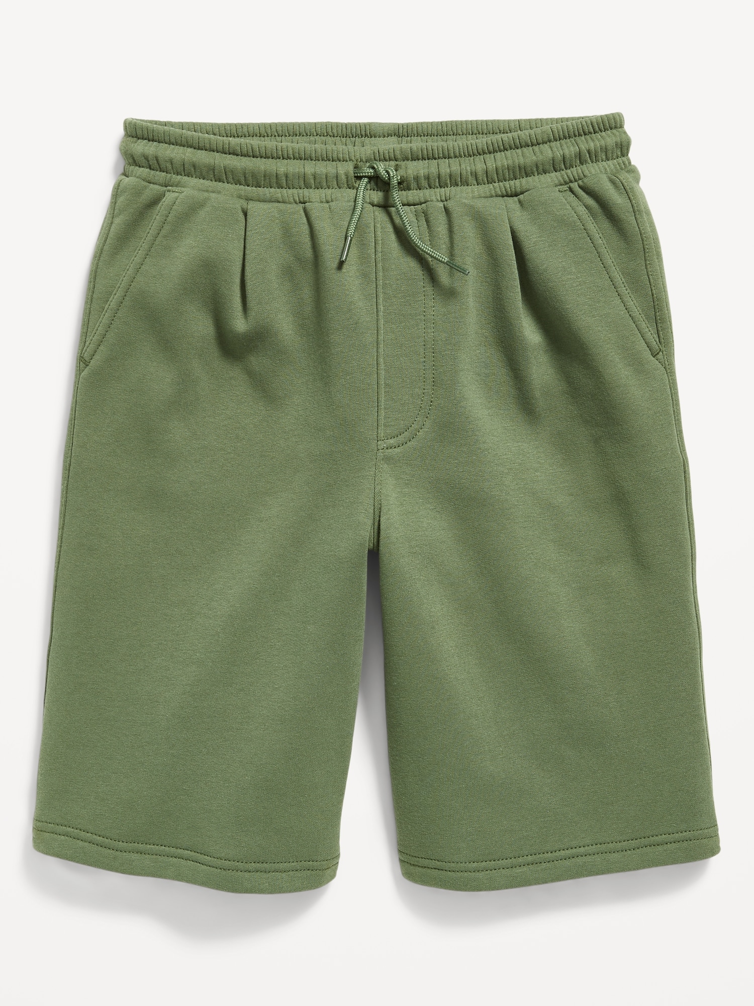 Below Knee Baggy Fleece Shorts for Boys: elasticized waistband, functional drawstring, diagonal on-seam pockets, single patch pocket at back, #805560