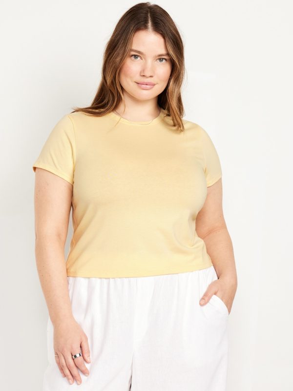 Bestee Crop T-Shirt: A classic, slim fit that’s instantly polished.rib-knit crew neck, short sleeves, #537378