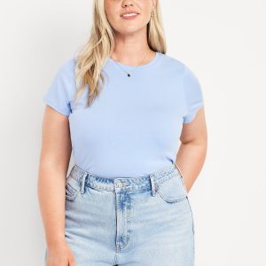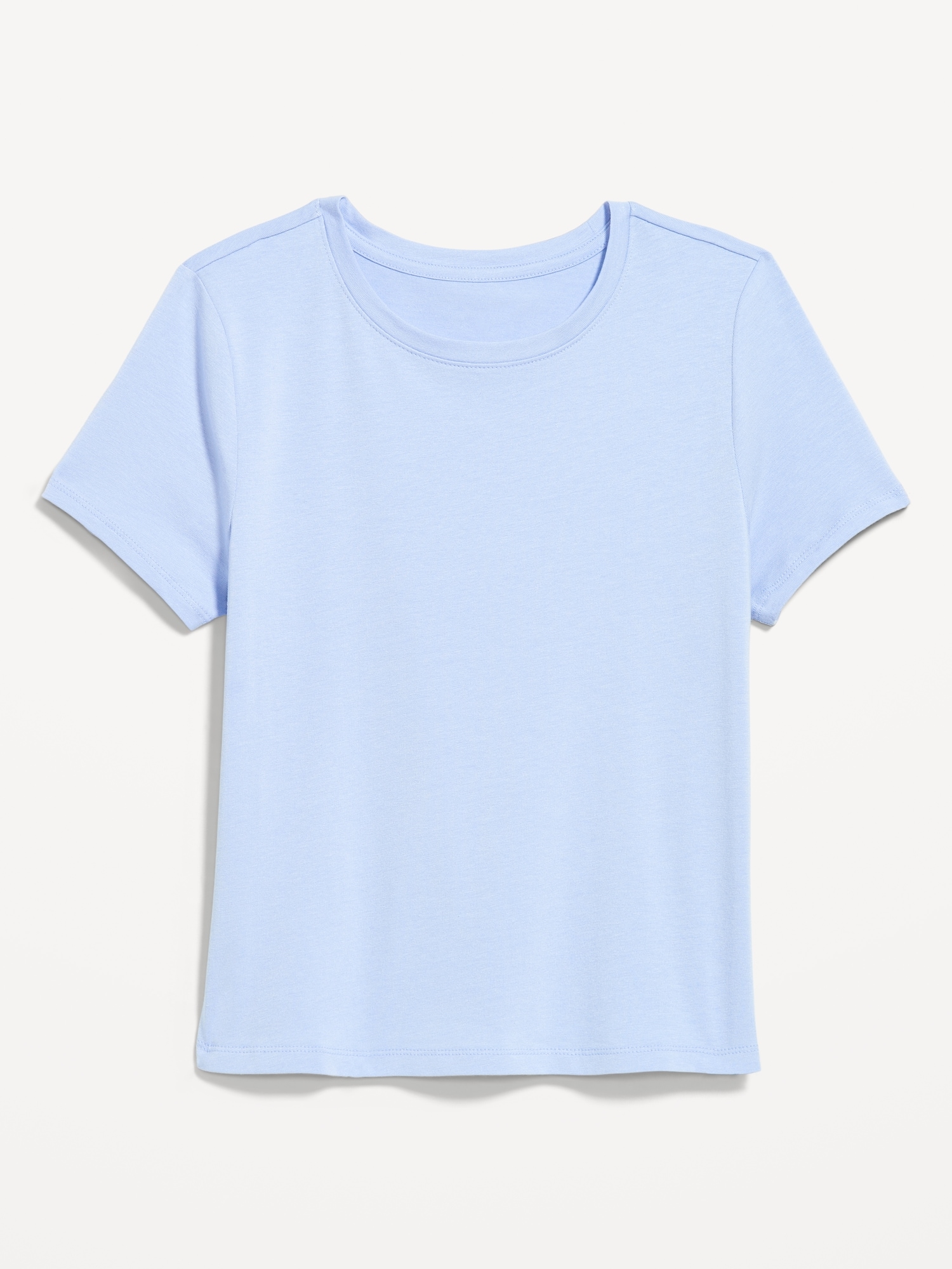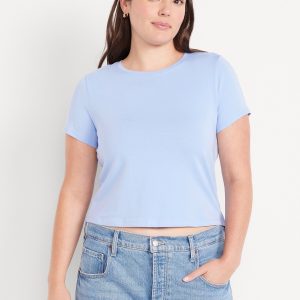 Bestee Crop T-Shirt: A classic, slim fit that’s instantly polished.rib-knit crew neck, short sleeves, #537378