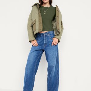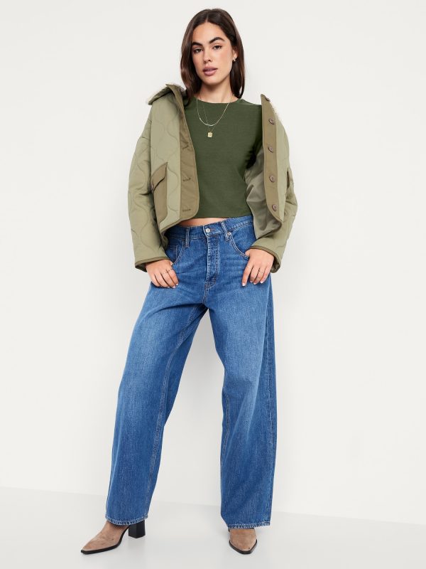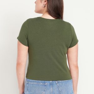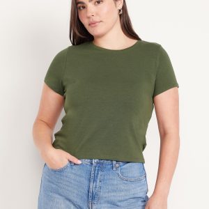 Bestee Crop T-Shirt: A classic, slim fit that’s instantly polished.rib-knit crew neck, short sleeves, #537378