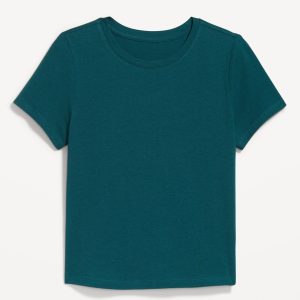 Bestee Crop T-Shirt: A classic, slim fit that’s instantly polished.rib-knit crew neck, short sleeves, #537378