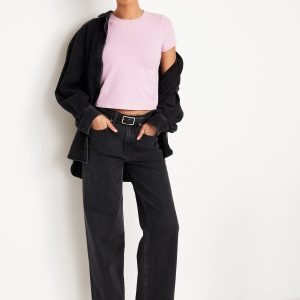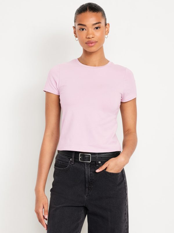 Bestee Crop T-Shirt: A classic, slim fit that’s instantly polished.rib-knit crew neck, short sleeves, #537378