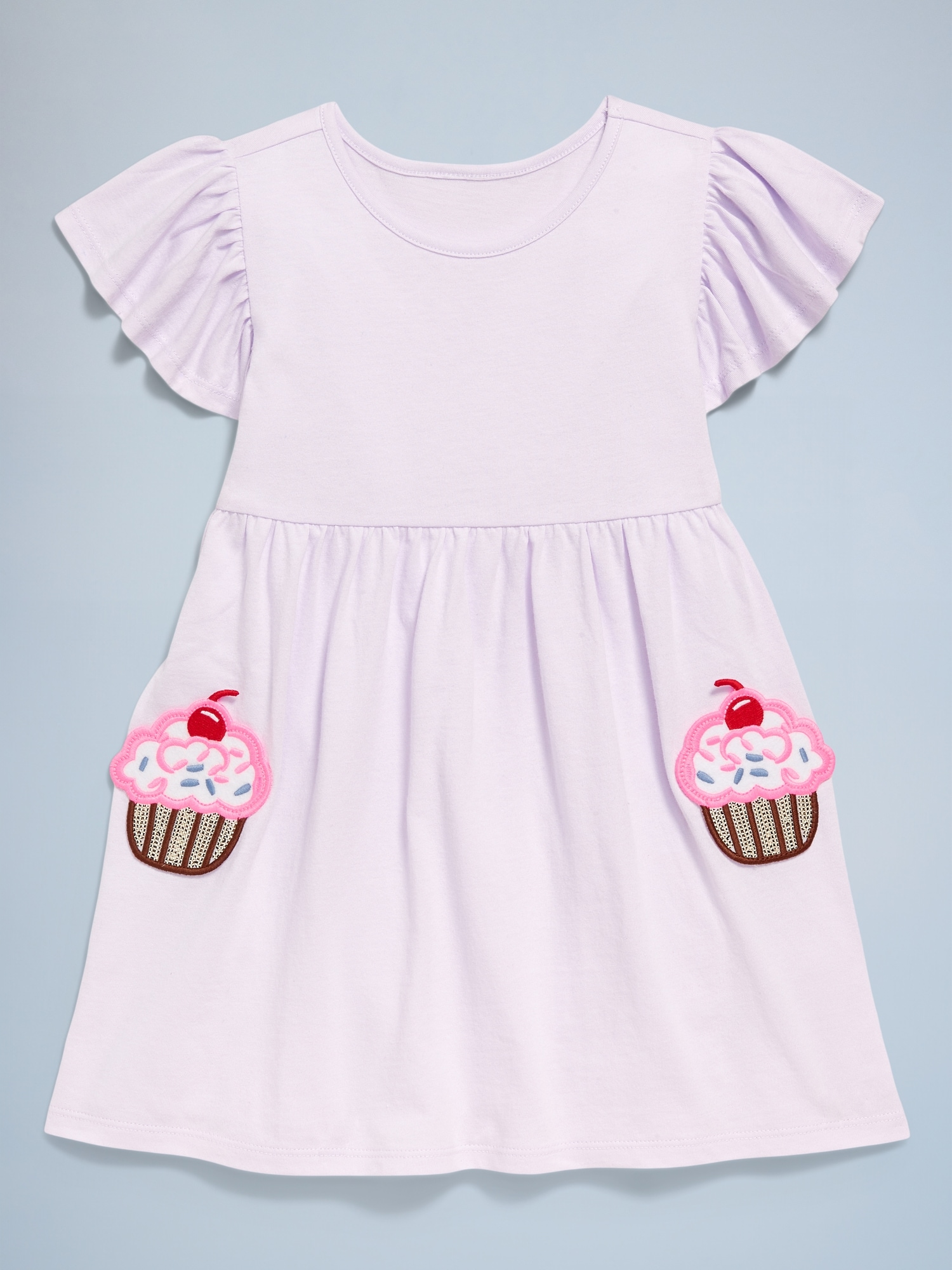 Birthday Embroidered Pockets Fit and Flare Dress for Toddler Girls: The (Bestest) Birthday Shop!square neckline, short flutter sleeves, smocked backing, full skirt, all-over print, online exclusive, #694828