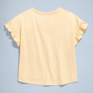 Birthday Graphic T-Shirt for Toddler Girls: The (Bestest) Birthday Shop!crew neck, short ruffle sleeves, graphic at front, rounded hem, #689939