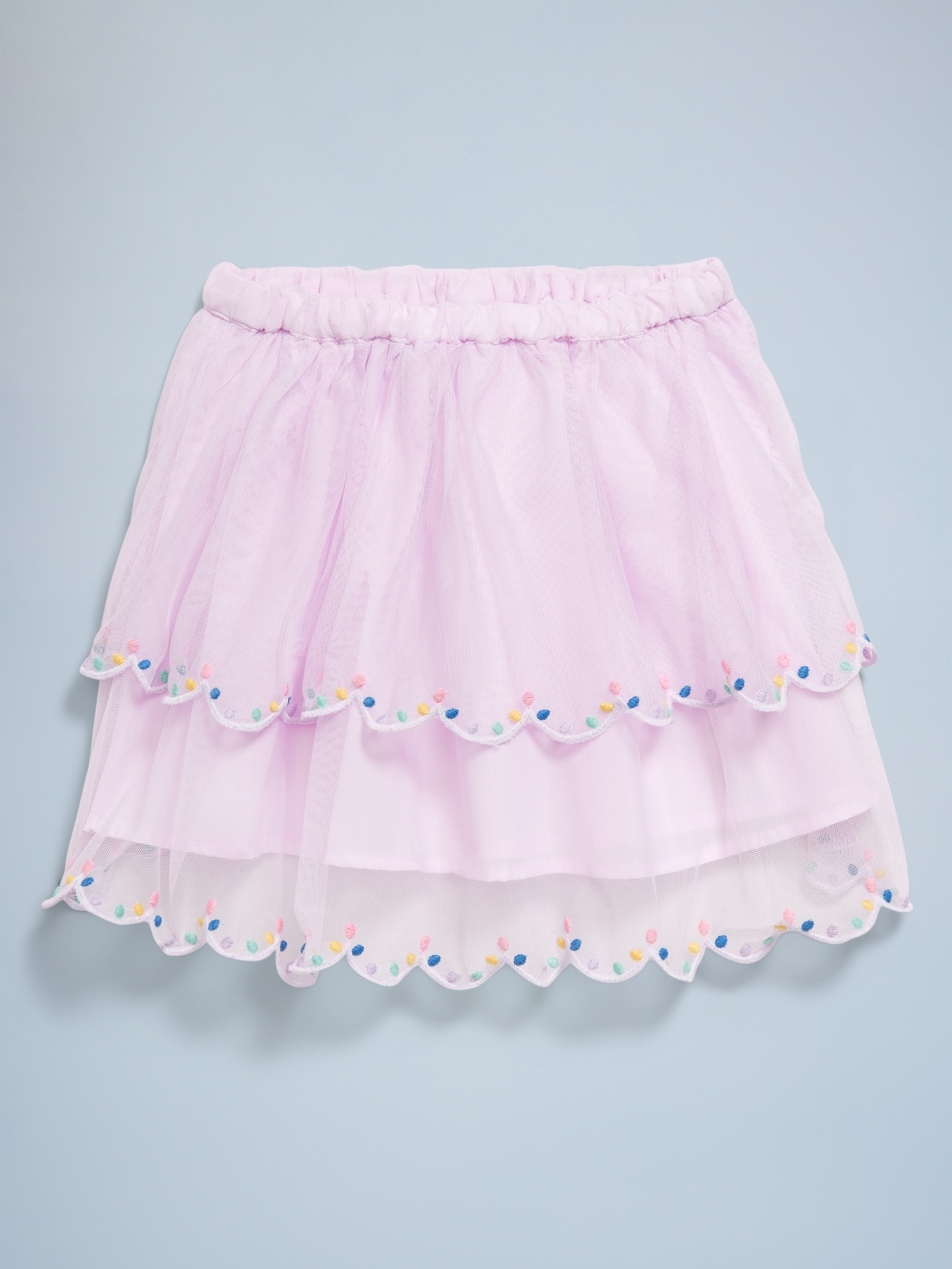 Birthday Tiered Tulle Skirt for Toddler Girls: The (Bestest) Birthday Shop!elasticized waistband, mesh tulle tiers, embroidered dots along hem, scallop hem, online exclusive, #694455