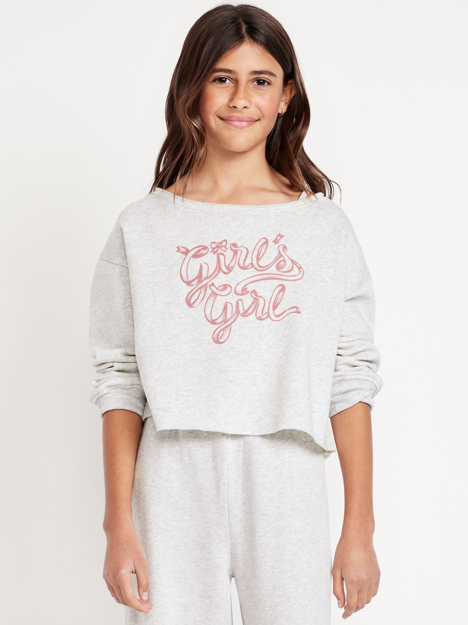 Boat-Neck Graphic Sweatshirt for Girls