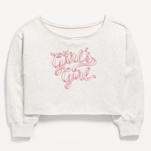 Boat-Neck Graphic Sweatshirt for Girls: boat neck, long sleeves, drop shoulders, graphic at front, #788048