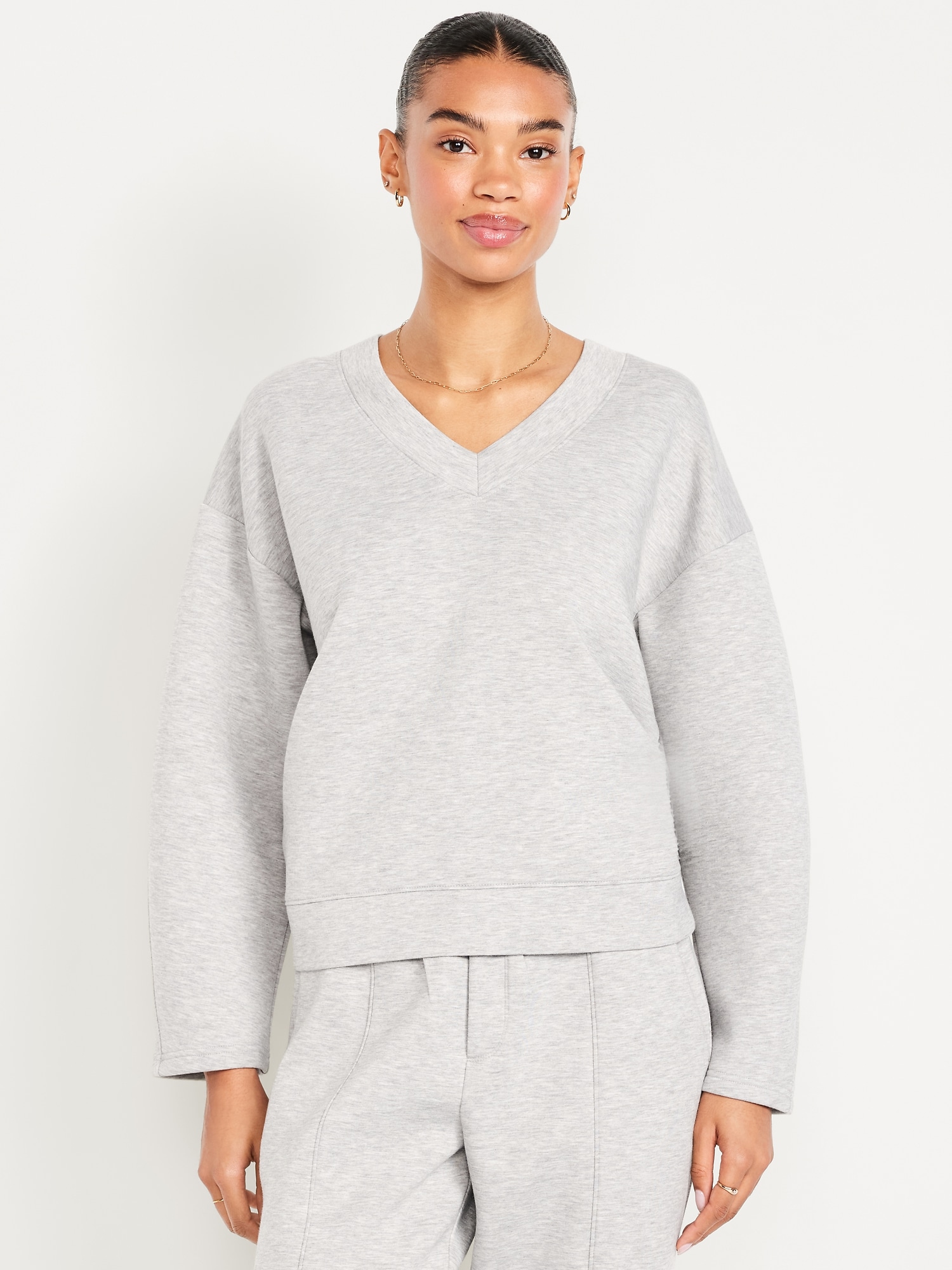 Bounce Fleece Cocoon Sweatshirt: Featuring Bounce Fleece. A smooth, cooling finish that feels good and looks chic everywhere you go.v-neck, long sleeves, pullover style, breathable, #805760