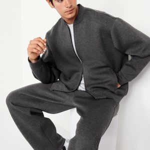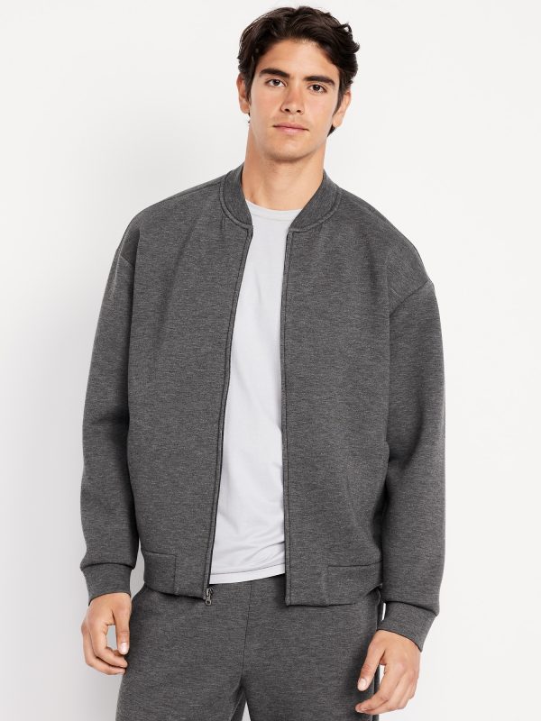 Bounce Fleece Oversized Bomber Jacket: banded collar, long drop-shoulder sleeves, full-zip front, vertical welt pockets, #787948