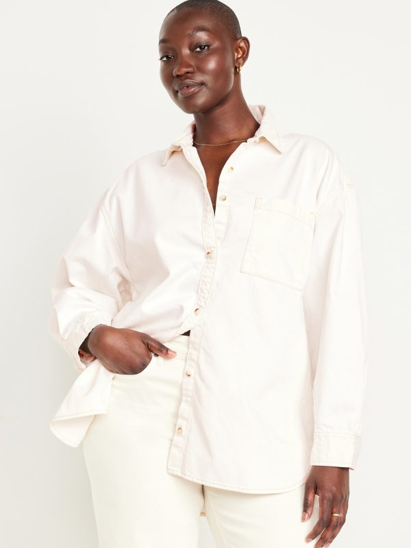 Boyfriend Button-Down Jean Tunic: spread collar, long sleeves with buttoned cuffs, patch chest pocket, full-button front, #800071