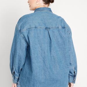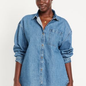 Boyfriend Button-Down Jean Tunic: spread collar, long sleeves with buttoned cuffs, patch chest pocket, full-button front, #800071