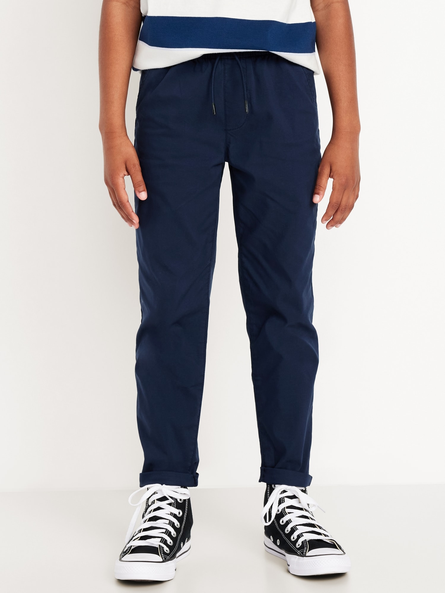 Built-In Flex Tapered Tech Pants for Boys: Elasticized waistband, with adjustable drawstirng., Faux fly., Diagonal on-seam hip pockets; vertical zippered pocket at left thigh; welt pocket at back right, with hidden zippered closure., Tapered rolled-cuff leg openings., Soft, quick-drying cotton/nylon twill., Engineered with innovative Built-In Flex stretch technology. Equal parts comfort & movement. Flexin’ on ’em., Easy pull-on style., Go-Dry moisture-wicking technology keeps him dry & comfortable., #875621