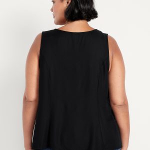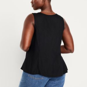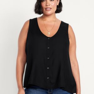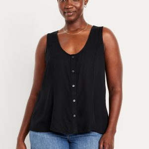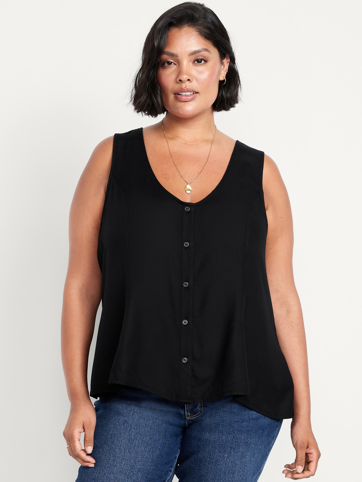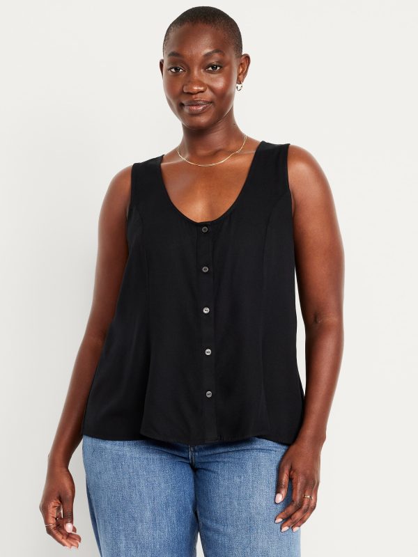 Button-Down Crepe Tank Top: scoop neck, full-button front, princess seams, #804419