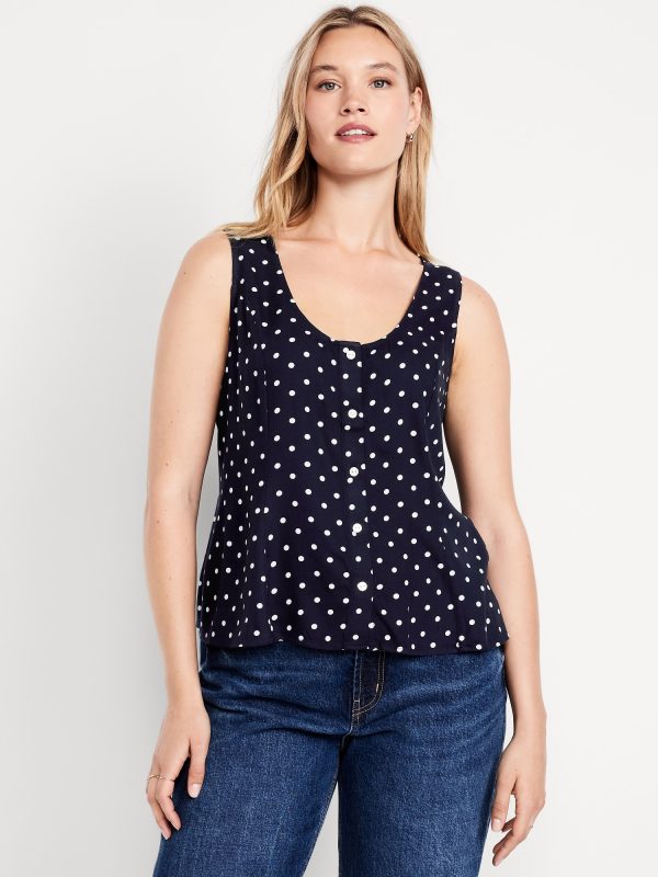 Button-Down Crepe Tank Top: scoop neck, full-button front, princess seams, #804419