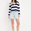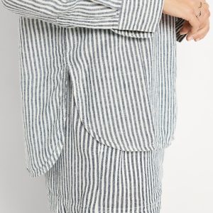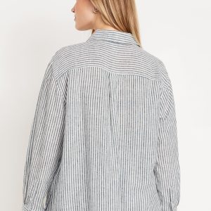 Button-Down Linen-Blend Striped Shirt: spread collar, long sleeves, buttoned cuffs, patch chest pocket, full-button front, striped print, curved hi-lo hem, #693623