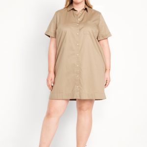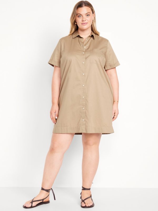 Button-Down Mini Shirt Dress: spread collar, short sleeves, side-seam pockets, patch chest pocket, full-button front, #705355