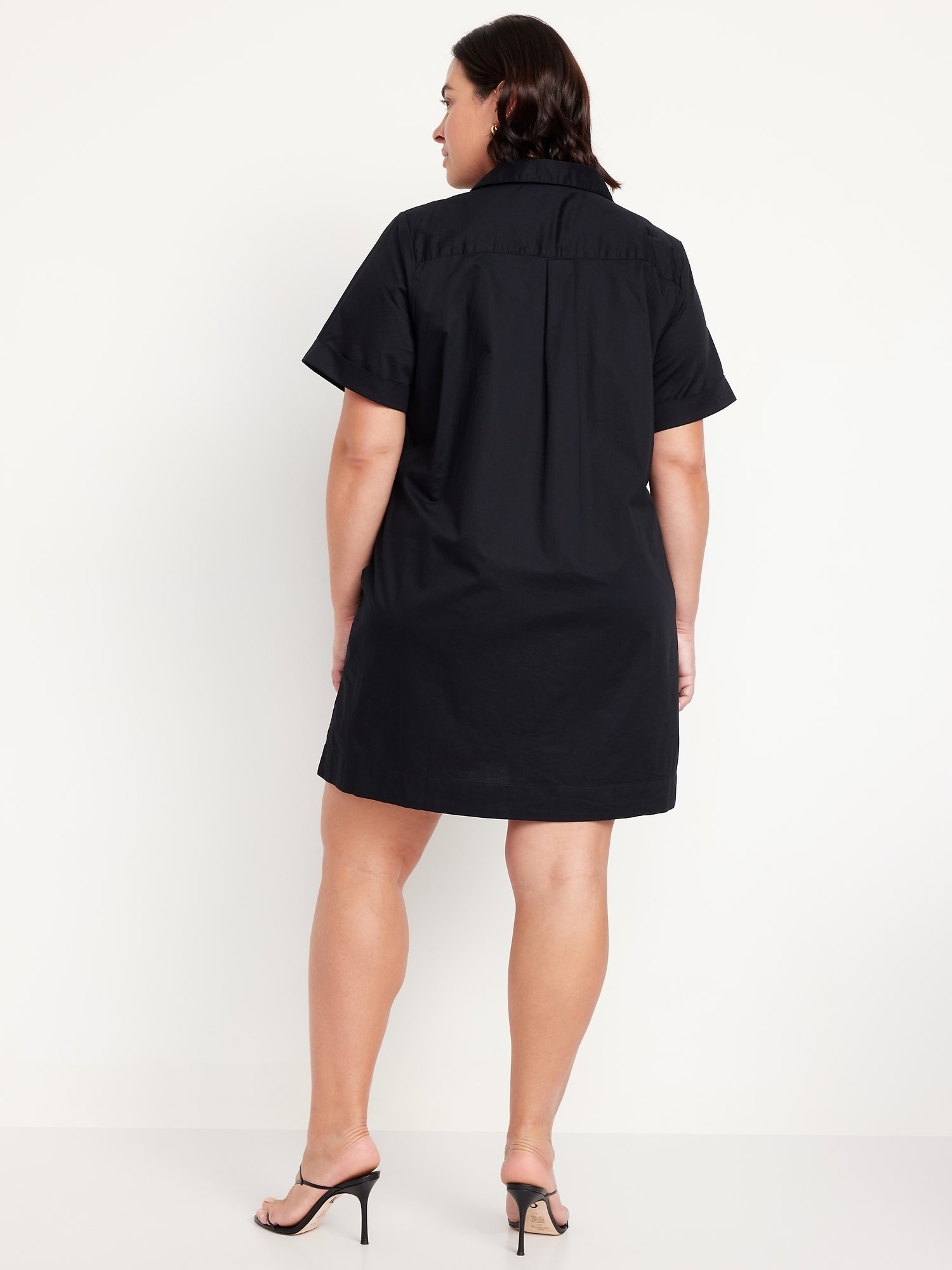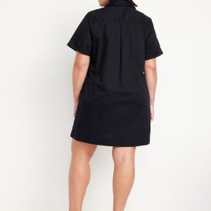 Button-Down Mini Shirt Dress: spread collar, short sleeves, side-seam pockets, patch chest pocket, full-button front, #705355