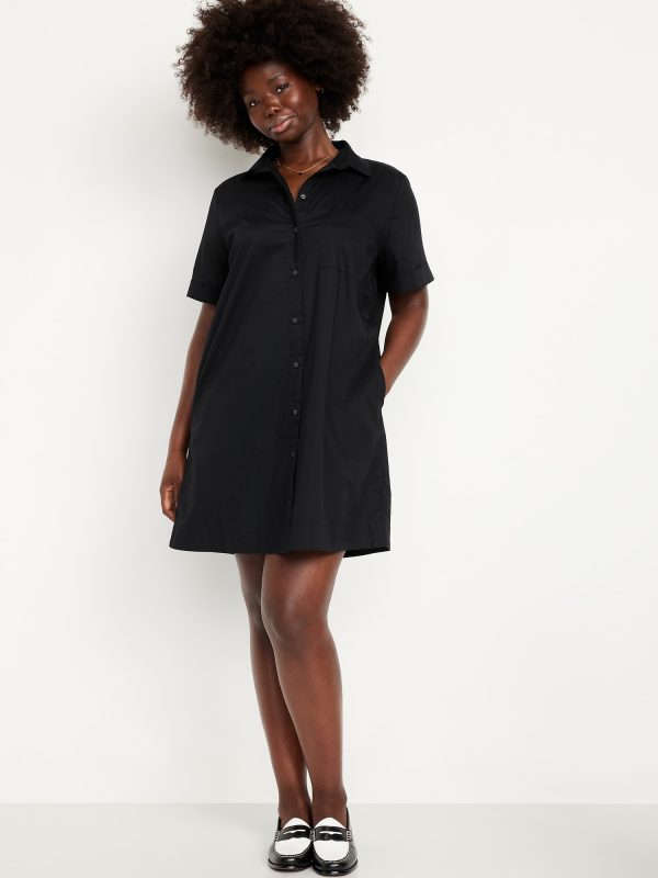 Button-Down Mini Shirt Dress: spread collar, short sleeves, side-seam pockets, patch chest pocket, full-button front, #705355