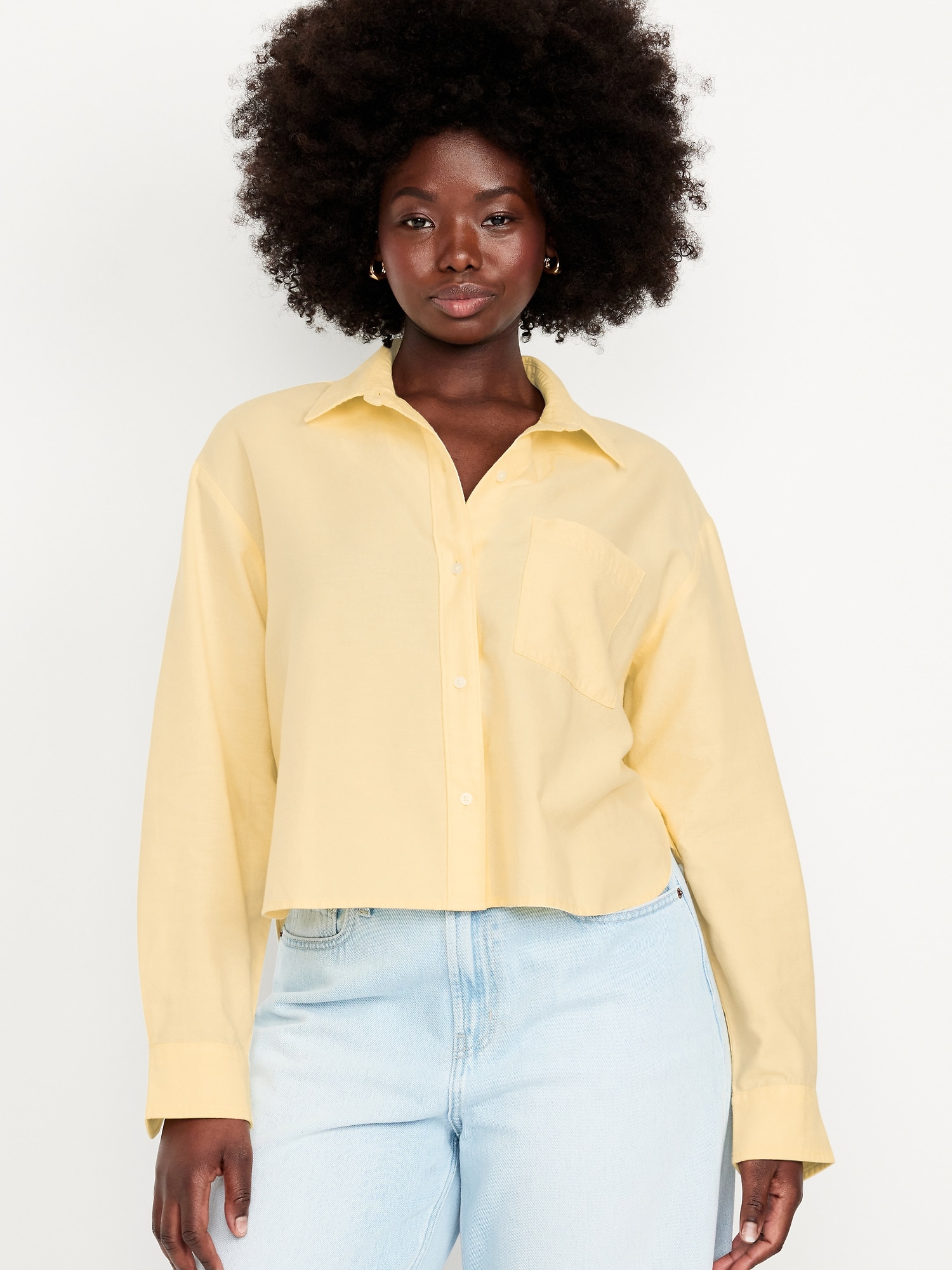 Button-Down Oxford Crop Shirt