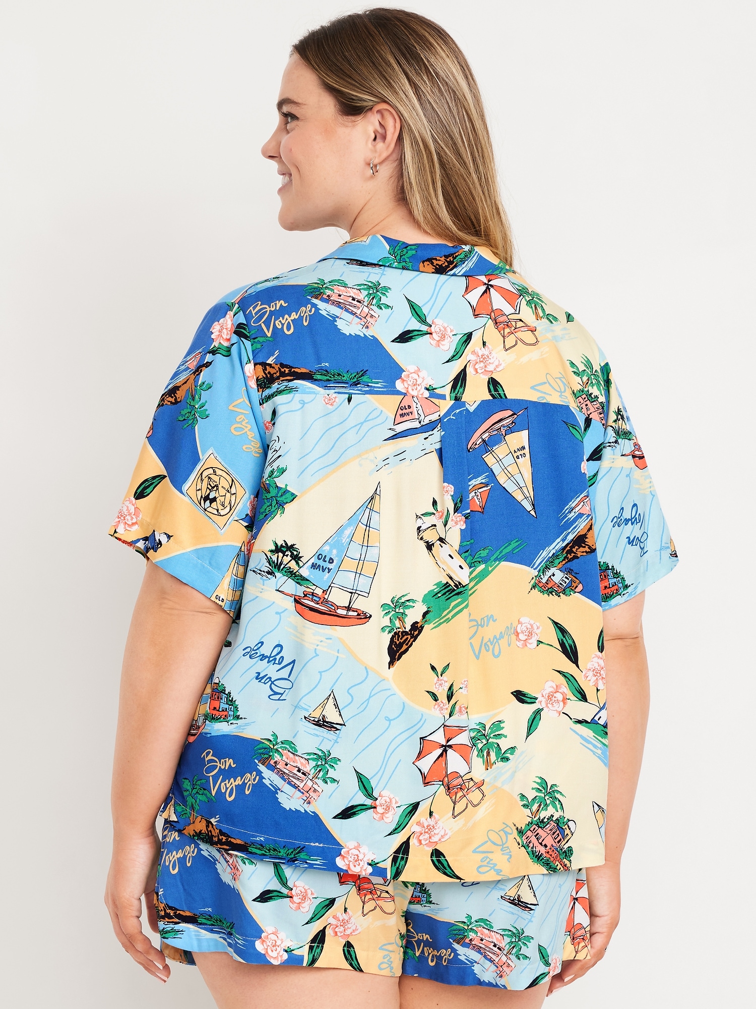 Button-Down Playa Shirt: Drapey, laid-back and ready for the breeze.spread collar, short sleeves, full-button front, seamed back yoke, #704203