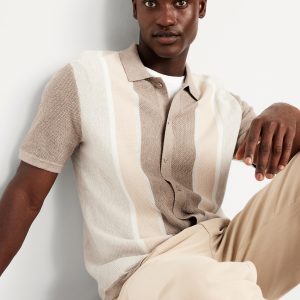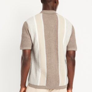 Button-Down Striped Polo: spread collar, short sleeves, buttoned placket, pullover style, #802042
