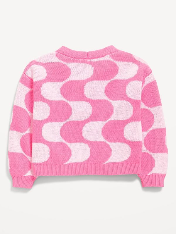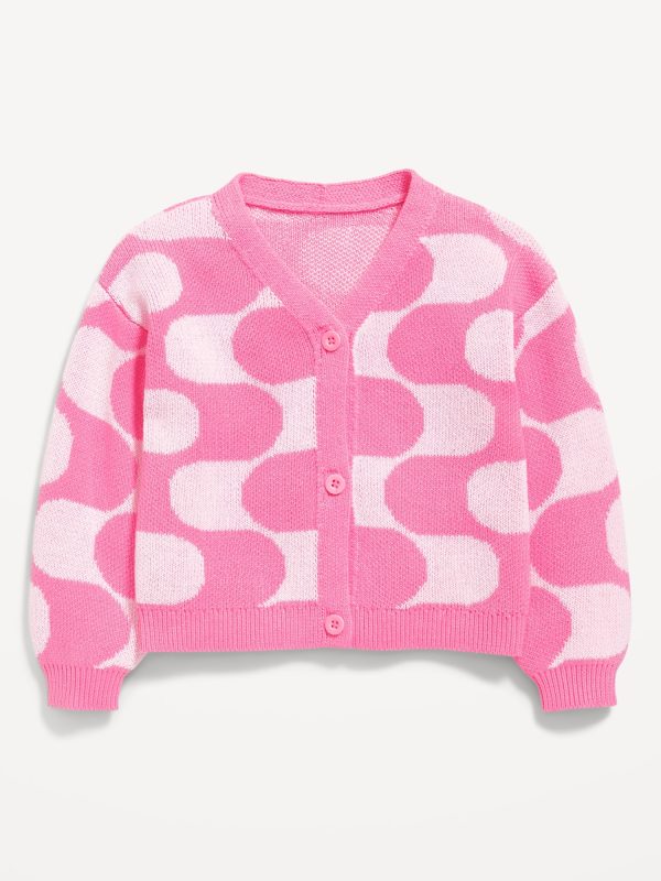 Button-Front Cardigan Sweater for Toddler Girls: v neck, long sleeves, drop shoulders, button front, all-over pattern, #762426