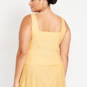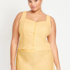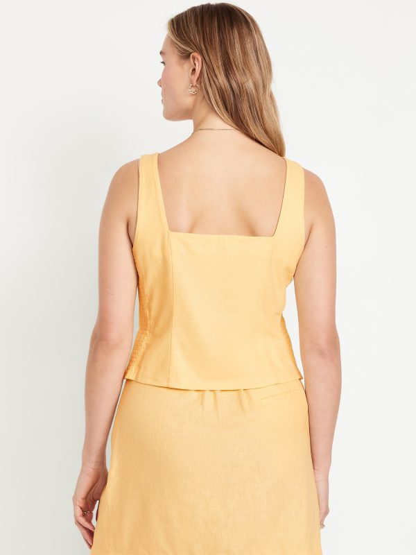 Button-Front Linen-Blend Vest: sweetheart neckline, wide straps, five-button front, smocked side panels, princess seams, #704063