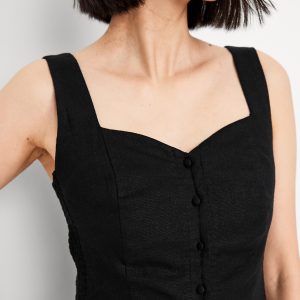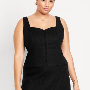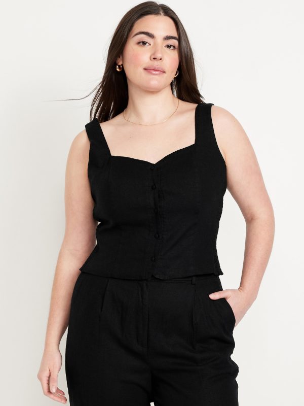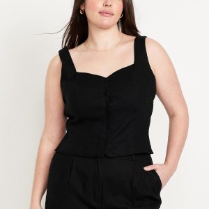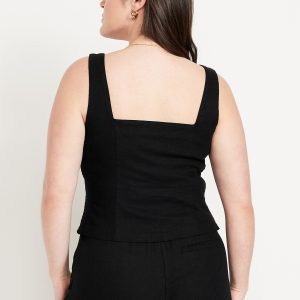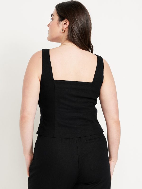 Button-Front Linen-Blend Vest: sweetheart neckline, wide straps, five-button front, smocked side panels, princess seams, #704063