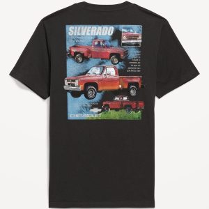 Chevroletâ„¢ Silveradoâ„¢ T-Shirt: rib-knit crew neck, short sleeves, licensed chest graphic and full back graphic, Copyright 2025 General Motors. All Rights Reserved, #751497