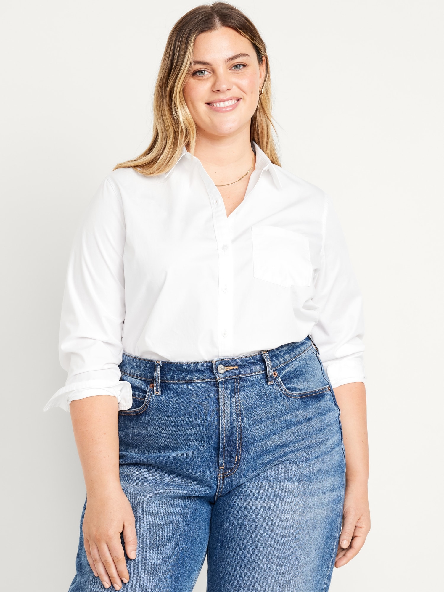 Classic Button-Down Shirt: spread collar, long sleeves, buttoned cuffs, button front, patch chest pocket, curved hem, fading, #576683