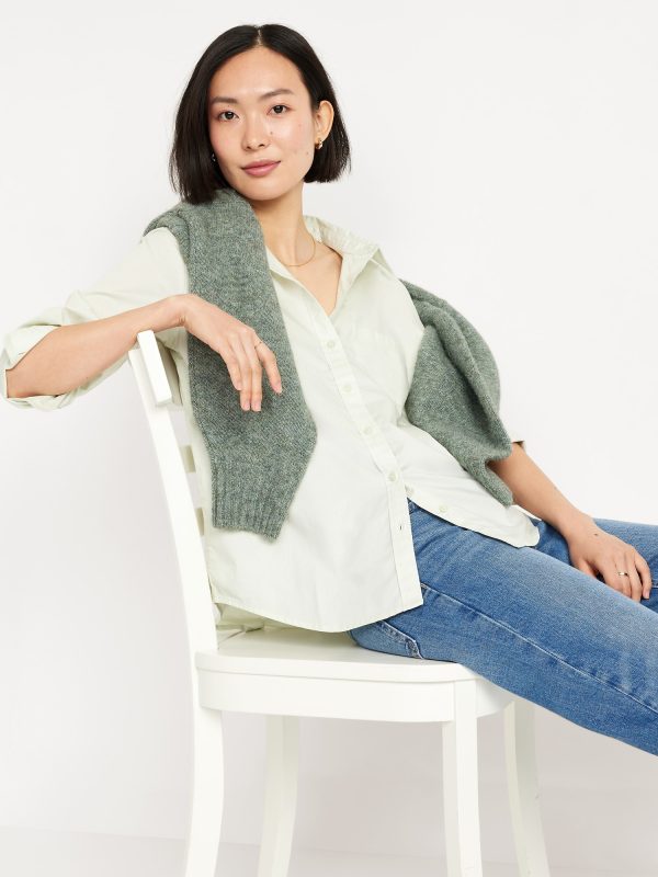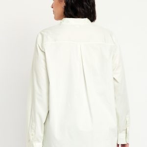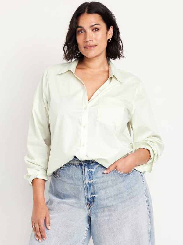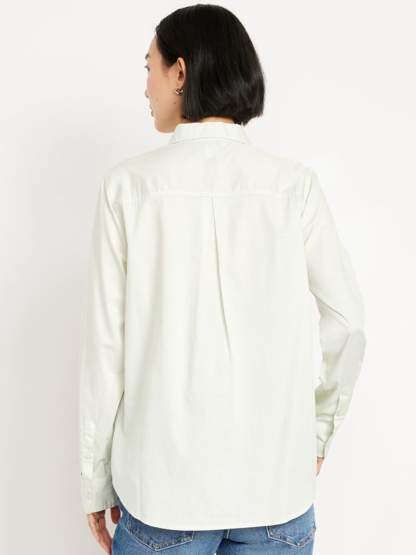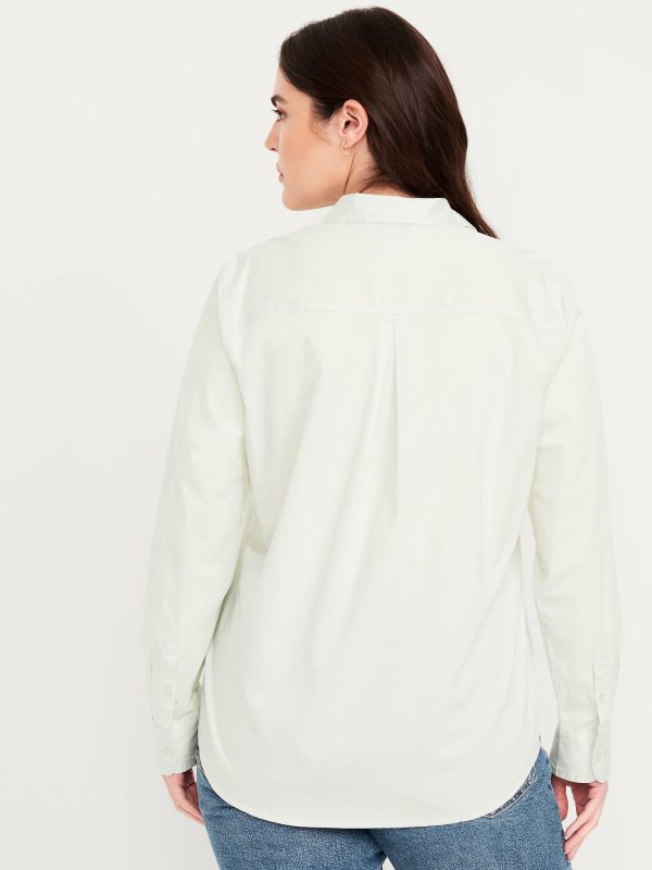 Classic Button-Down Shirt: spread collar, long sleeves, buttoned cuffs, button front, patch chest pocket, curved hem, fading, #576683
