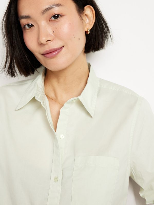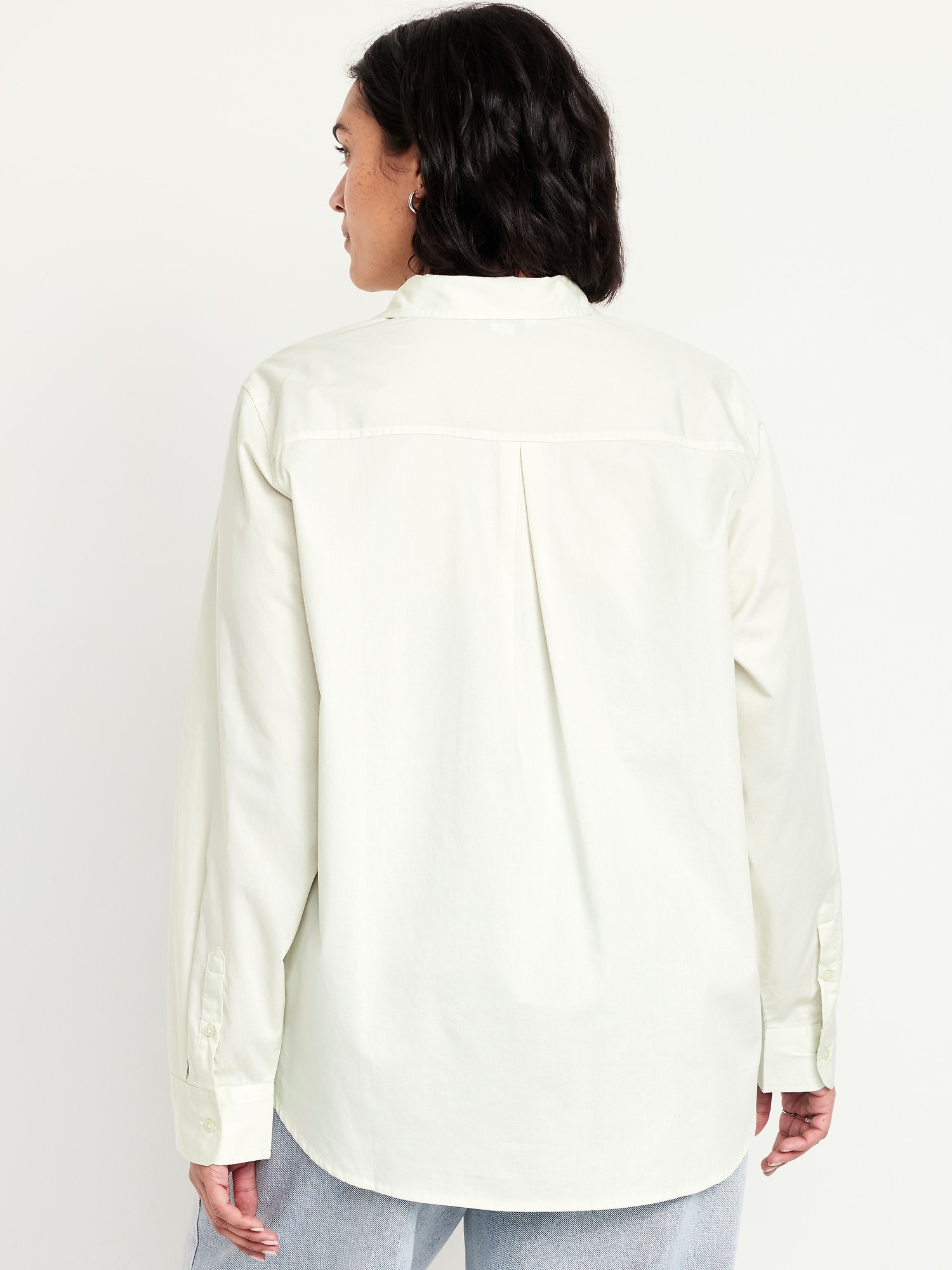 Classic Button-Down Shirt: spread collar, long sleeves, buttoned cuffs, button front, patch chest pocket, curved hem, fading, #576683