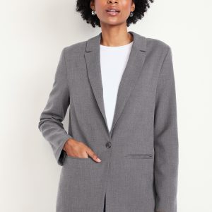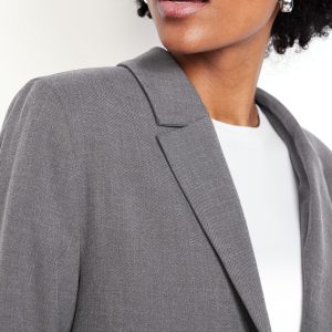 Classic Double-Weave Blazer: notched lapel, long sleeves, single-button front, welt pockets, fully lined, #766312